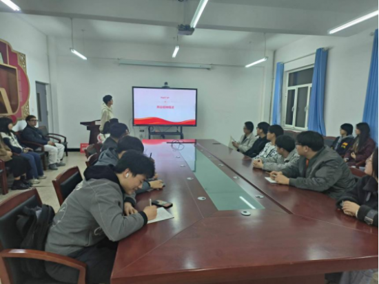 分团委档案管理部部长武琛智带领各班团支书学习贯彻会议精神和政府工作报告。聚焦人工智能+、美丽中国先行区、放心消费行动等两会热词,围绕关于就业创业、学生心理健康等方面青年关心的话题,通过领学解读、重点交流、知识问答等方式,将学习“两会”精神与感悟习近平总书记对青年的嘱托结合起来。