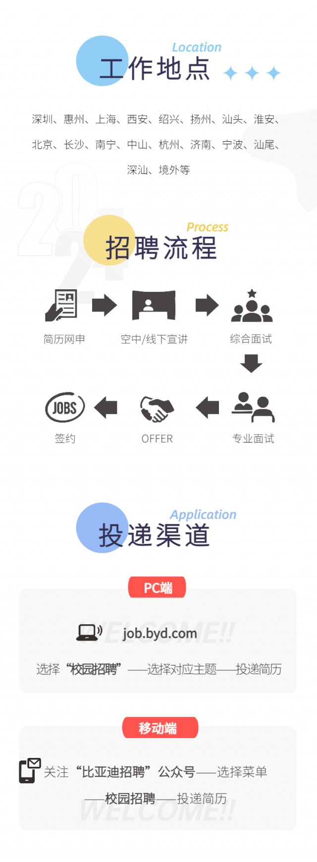 比亚迪2024年招聘开启包含研发/运营/销售/管理等大量热门岗位无笔试,部分岗位不限专业薪资高、发展好、有前景、还大量扩招长按识别下方二维码回复:比亚迪,获取岗位表、进行网上报名。