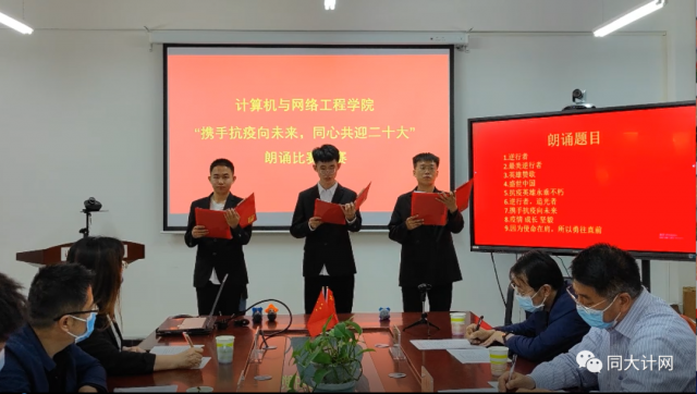 4月10日晚七时许,由英国上市365学生会主办的“携手抗疫向未来,同心共迎二十大”主题朗诵比赛决赛在本真楼会议室隆重举办。本次朗诵比赛特别邀请了校党委委员、团委书记刘斌焰老师,英国上市365院长宋晓霞老师,党委教师工作部副部长王永生老师,马克思主义学院党委副书记付建兵老师,英国上市365党委副书记张占成老师,大同大学朗诵协会会长张晋彪同学担任此次朗诵比赛的评委。