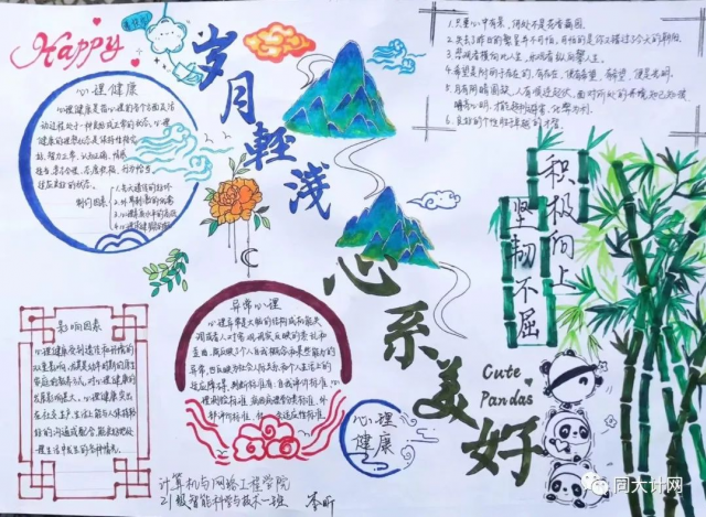 健康的心理素质是大学生全面发展的基本要求,也是将来走向社会,在工作岗位上发挥智力水平、积极从事社会活动以及不断向更高层次发展的重要条件。为进一步做好疫情防控下大学生心理健康教育工作,提倡大学生关爱自我、了解自我、接纳自我,关注自身心理健康和心灵成长,提高自身心理素质,我院学生精心设计版面,挑选内容,图文并茂的手抄报邀你共赴美好!