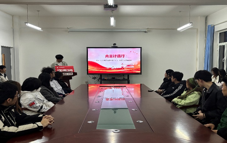 会后团员代表进行发言,24级计算机一班马书慧同学表示:习近平总书记曾指出:“崇尚英雄才会产生英雄,争做英雄才能英雄辈出。”最深的缅怀是弘扬,最好的纪念是传承。在诵读革命烈士家书的字里行间,我们仿佛穿越时空,置身于那段烽火连天的峥嵘岁月,看到先辈们在枪林弹雨中无畏冲锋的身影,听到他们为民族解放发出的震耳呐喊,感受到他们对和平的深切渴望。正是无数革命先烈的无私奉献与英勇牺牲,才换来今日祖国的繁荣富强与人民的幸福安康。山西革命烈士的家书,不仅是他们对家国情怀的深情告白,更是他们用热血铸就的精神丰碑。这些家书穿越时空,闪耀着信仰的光芒,激励我们赓续红色血脉,勇担时代使命,以实际行动告慰先烈,书写无愧于时代的青春华章。