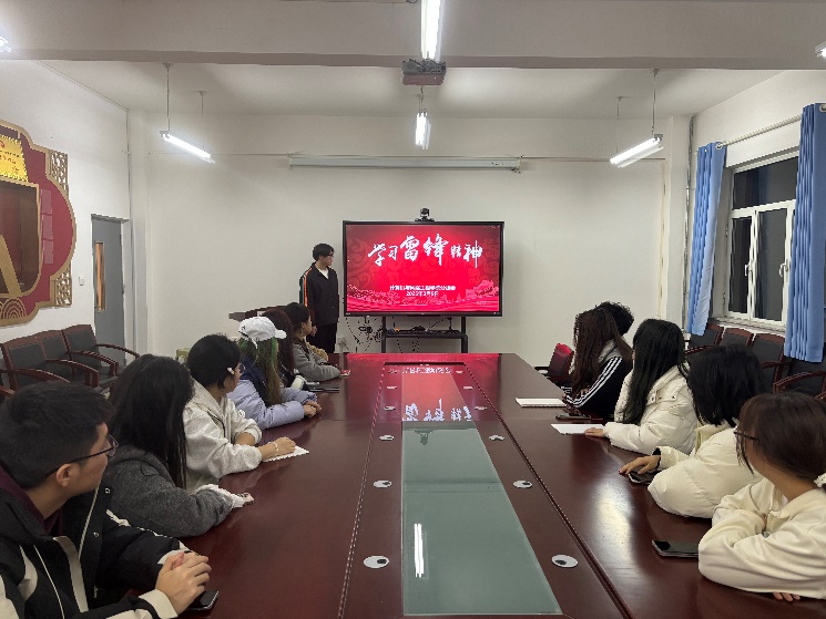 会议伊始,学生团委组织建设部部长姚佳森以习近平新时代中国特色社会主义思想为指导,以雷锋精神为主线,结合雷锋同志的生平和事迹,充分挖掘学雷锋示范典型,加强大家对新时代雷锋精神的理解,进一步树牢爱党爱国的坚定信念。一段段感人的故事,让在场的团干们深切体会到了雷锋无私奉献、一心为公的高尚品格,进一步树牢爱党爱国的坚定信念。紧接着,会议深入解读了雷锋精神的丰富内涵,涵盖了忠诚于党、国家和社会主义的崇高理想与坚定信念,致力于服务人民、乐于助人的奉献精神,专注于本职工作、精益求精的敬业精神等方面。