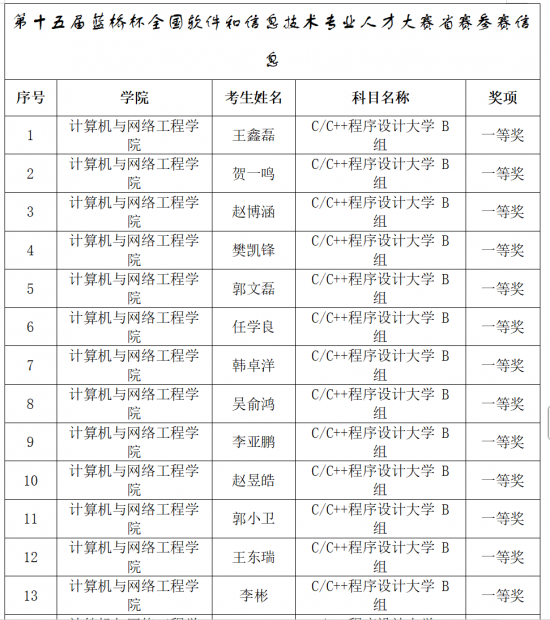 第十五届蓝桥杯全国软件和信息技术专业人才大赛省赛参赛信息