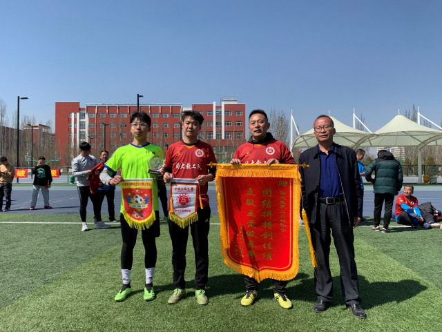 校园足球孕育梦想,绿茵逐鹿彰显青春。赛后,教职工足球协会和我院足球队互赠队旗、奖杯和锦旗。此次足球比赛加强了师生之间的交流与沟通,展示出了良好的体育竞技水平,更好地诠释了体育精神!后续我院将持续开展抗疫“三走”活动,丰富“五育”活动内容,加强“三全”育人体系构建,巩固学生第二课堂活动成果,提升应用型人才综合素养。