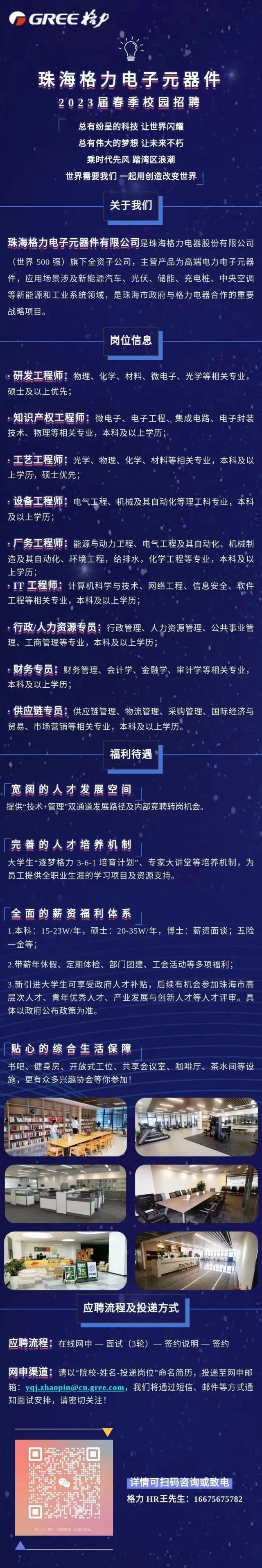 名企校招|本硕年收15-35万!珠海格力电子元器件2023春季校园招聘火热进行中