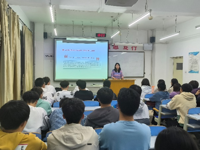 张莉结合团员和青年主题教育“强国复兴”专题为同学们讲授团课,以中国新时代十年的伟大变革和伟大成就作为切入点,从“党的二十大关于全面建成社会主义现代化强国、以中国式现代化全面推进中华民族伟大复兴的战略部署和习近平总书记的相关重要论述”、“新时代新征程党和国家事业发展的目标任务”以及“深刻理解中国式现代化是强国建设、民族复兴的唯一正确道路”三个方面为同学们详细阐述在习近平新时代中国特色社会主义思想理论指引下,用中国式现代化推进国家建设和民族复兴已经进入到不可逆转的历史进程。同时,鼓励23届毕业生学好专业知识,练就过硬本领,把个人的理想追求融入党和国家事业之中,到国家需要的地方建功立业。课上,她为同学们介绍了“特岗计划”、“三支一扶”、“西部计划”等一系列基层就业项目,引导鼓励更多2023届毕业生赴基层就业,将青春融入建设祖国的伟大征程。